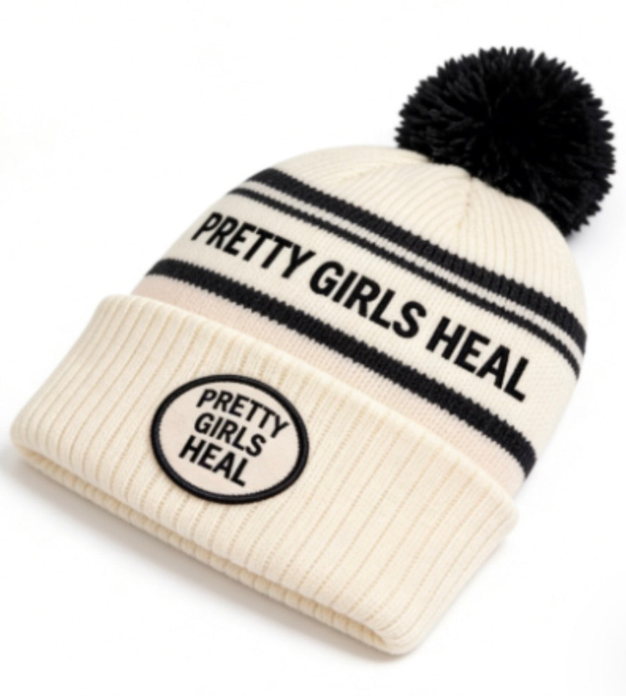 The Pretty Girls Heal™ Pom Beanie is more than a winter essential, it’s a statement of healing, softness, and strength. Designed with comfort and intention in mind, this beanie features a classic ribbed knit, a plush pom detail, and bold Pretty Girls Heal™ embroidery with a signature front patch.